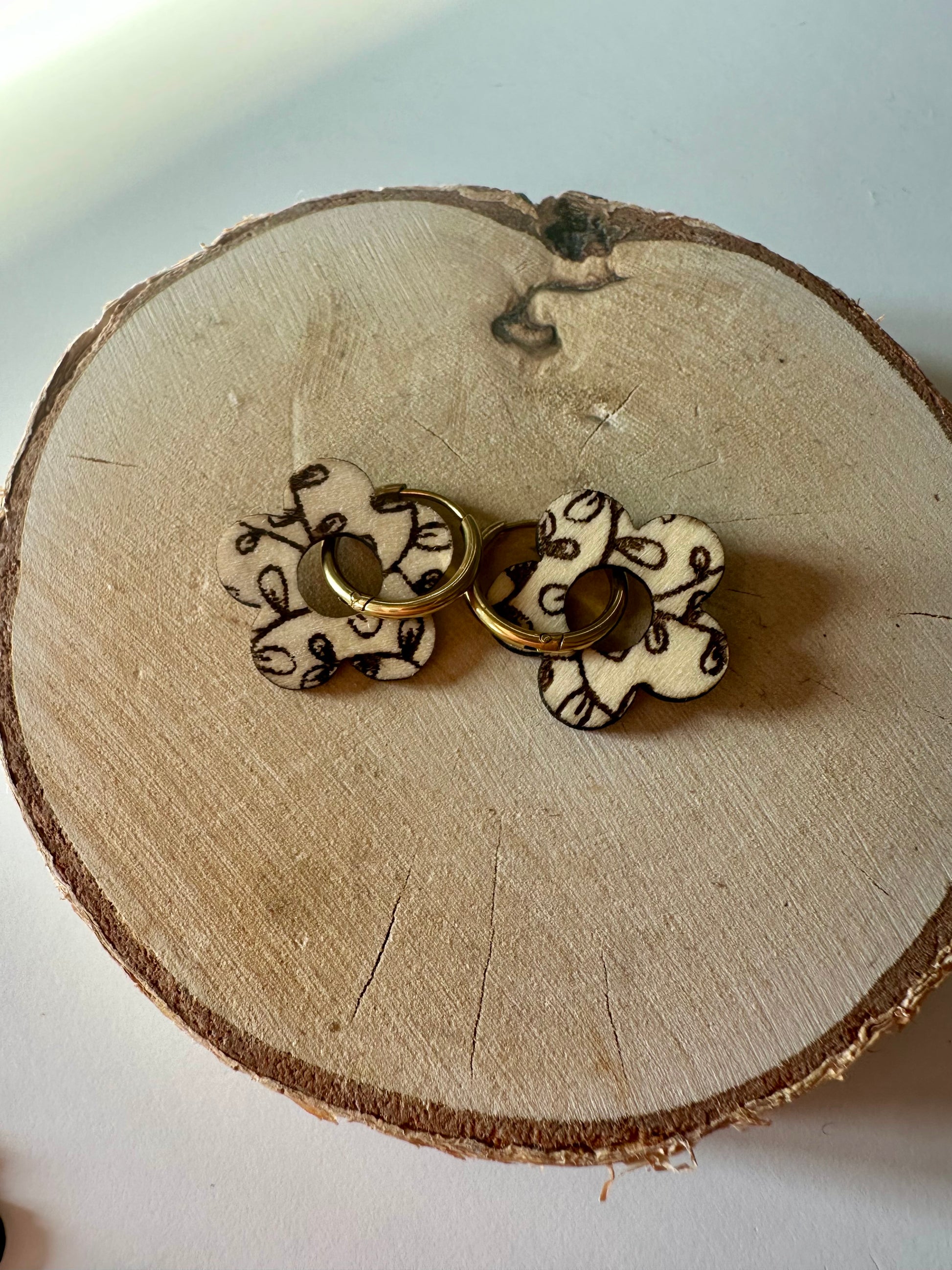 Matériaux : Bois (contreplaqué de tilleul) avec motif imprimé, Anneaux créoles en acier inoxydable 304L